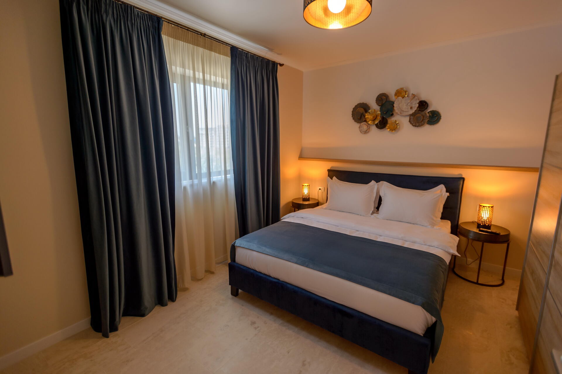 A comfortable bedroom welcomes its guests with high-quality furniture, a smart TV, air conditioning and insect nets, all to ensure privacy and rest.